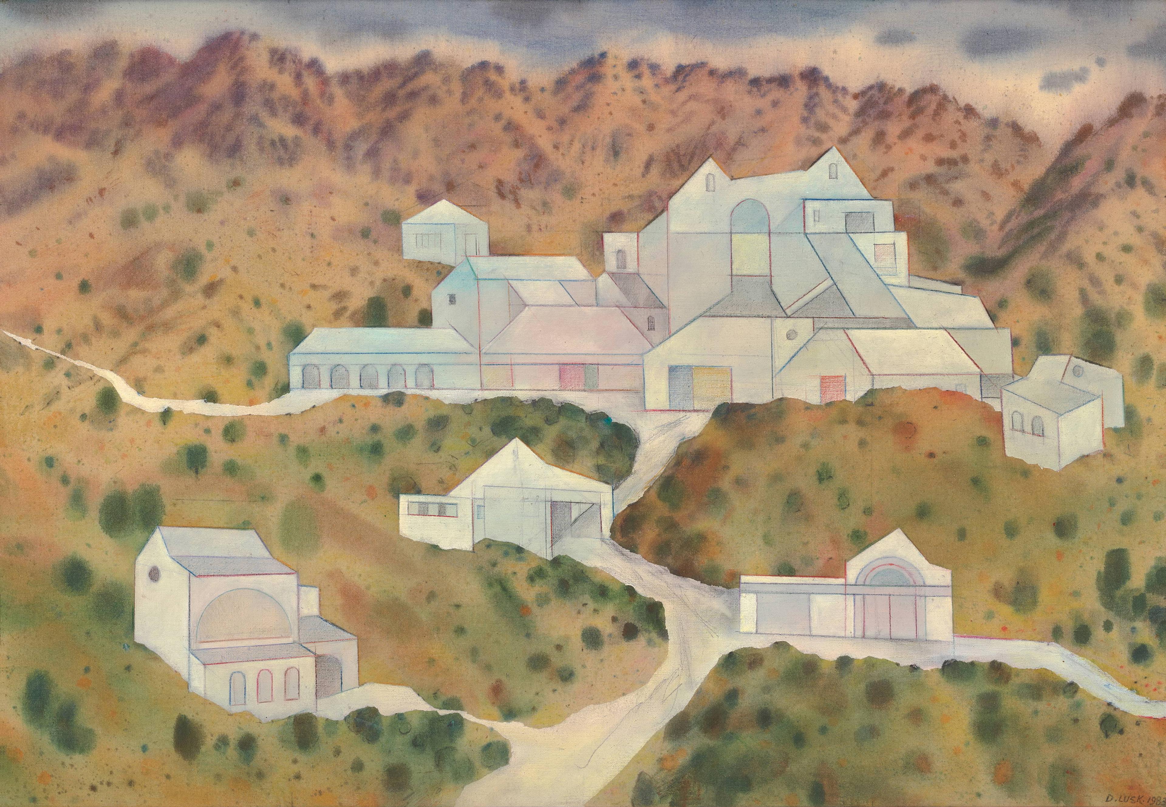Doris Lusk, Imagined Projects II, Limeworks, 1983, acrylic on canvas. Collection of Christchurch Art Gallery Te Puna o Waiwhetū, purchased 1984.